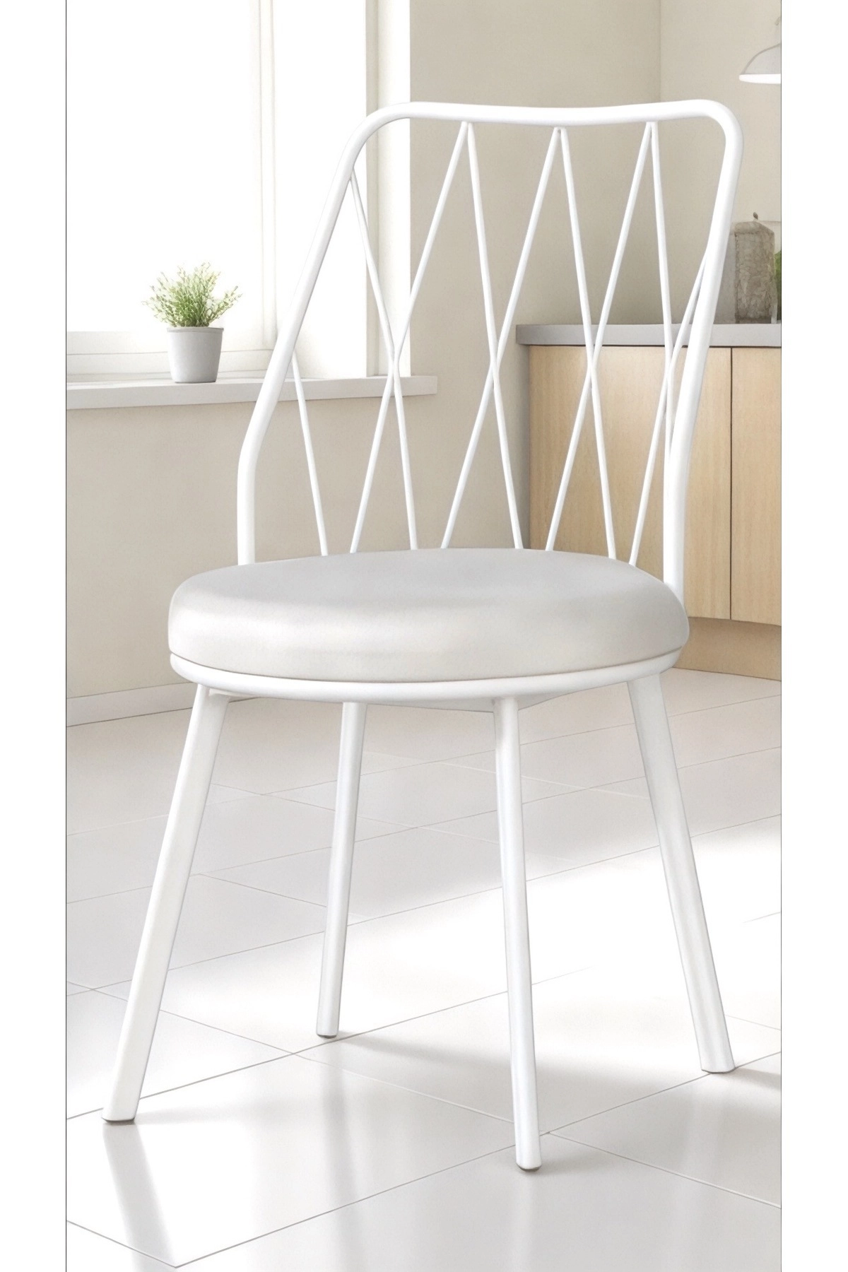 2 Adet Beyaz Yıldız Metal Tel Sandalye Mutfak Cafe Sandalyesi