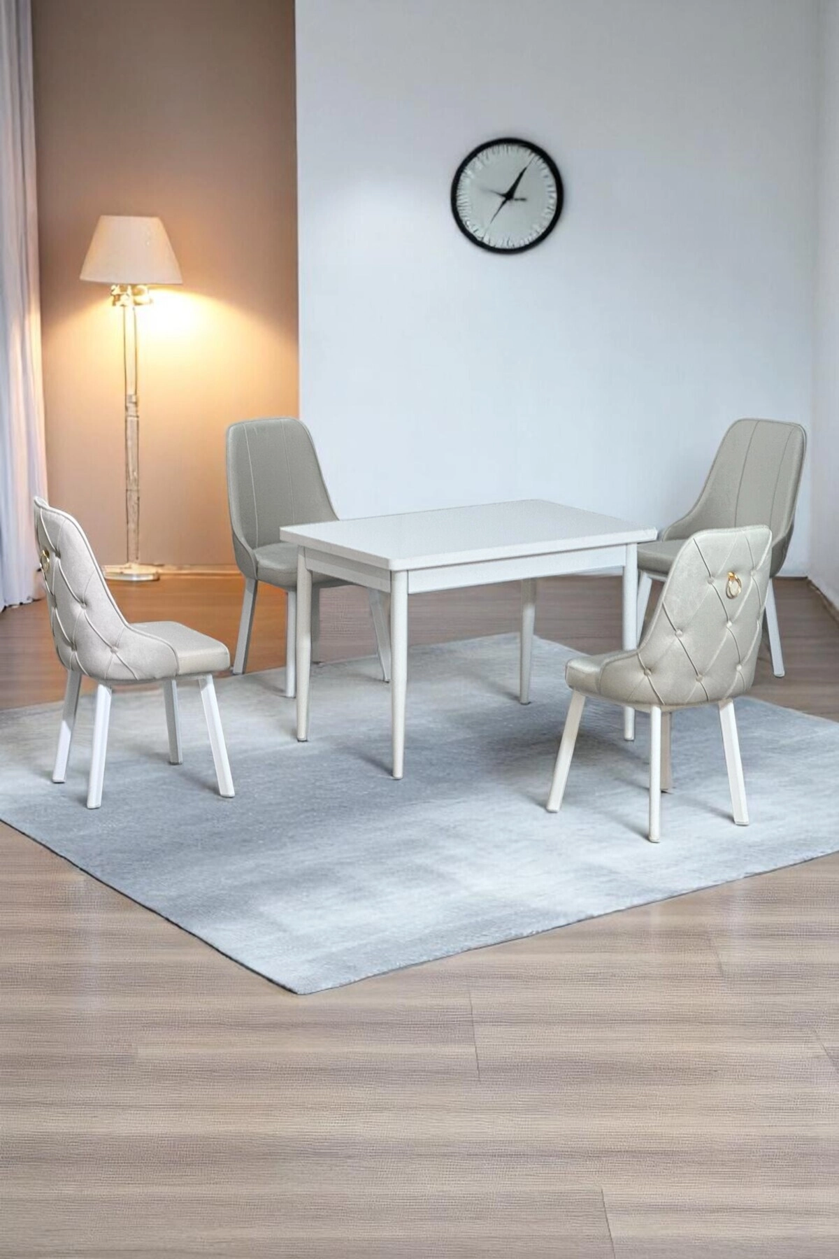 -4 adet krem rengi sandalyesiyle modern tasarımı evinizin her köşesine uyum sağlar.