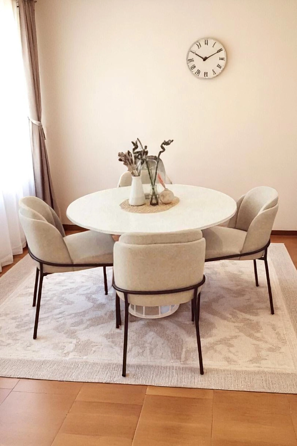Keten kumaş kaplama, dayanıklılığı ve kolay temizlenebilirliği ile öne çıkar böylece mutfakta veya salonunuzda uzun süreli kullanım için idealdir 6 AY garanti süresi, satın alma sonrası güven ve destek sağlar herhangi bir sorun karşısında müşteri memnuniyetini ön planda tutar Modern ve şık tasarımıyla her türlü mutfak veya salon dekorasyonuna uyum sağlar estetik görünümüyle mekanınıza zarif bir dokunuş katar