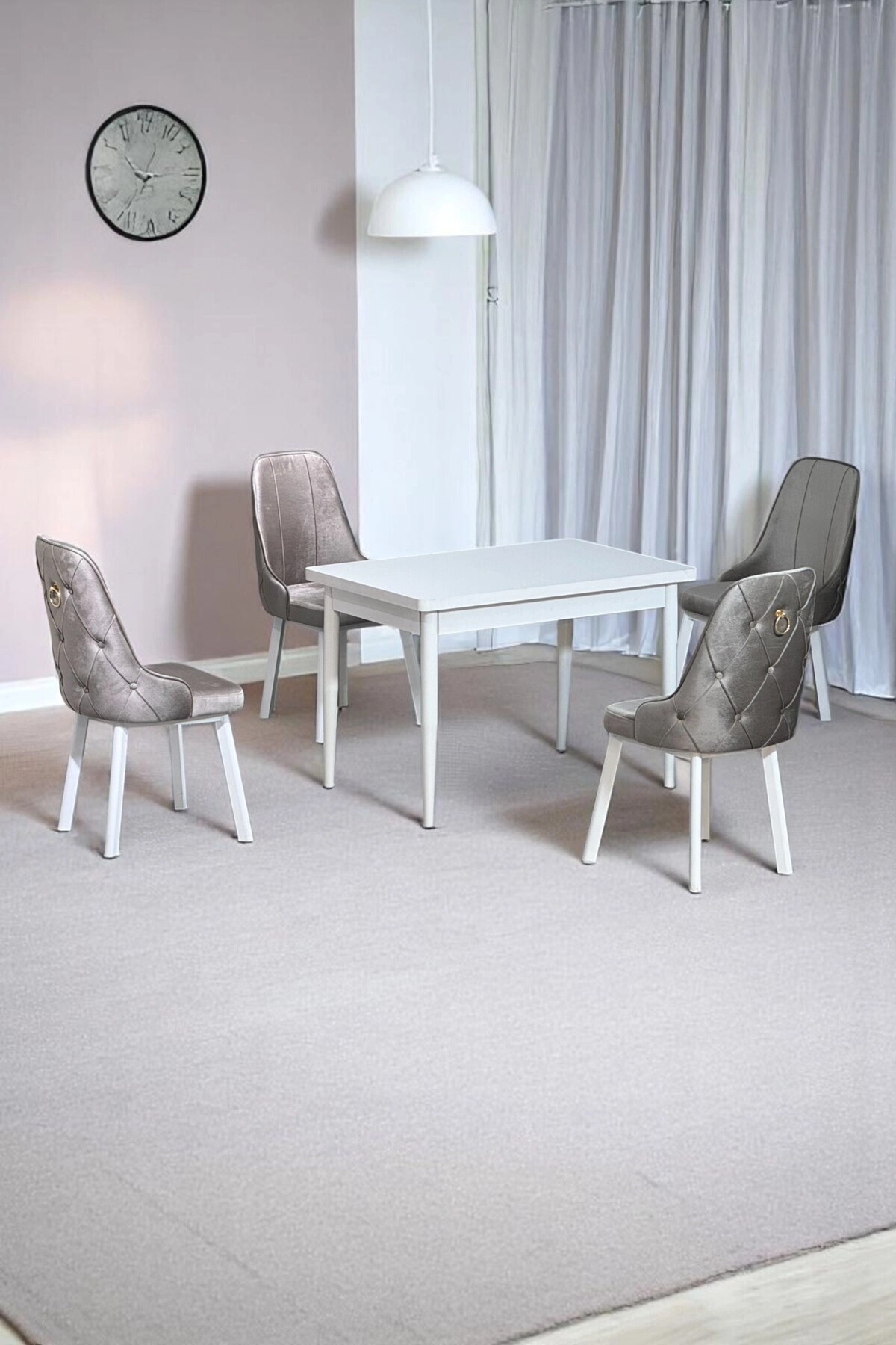 - Modern tasarımıyla dikkat çeken bu mutfak masası takımı, hem fonksiyonel hem de estetik bir görünüm sunar.